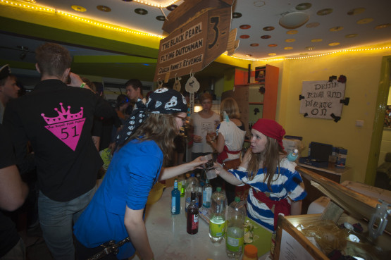 Met ooglapjes, schatkistjes en met doodskoppen versierde hoofddoeken kwamen gisteravond zo’n vijfhonderd studenten af op het flatfeest aan Campuslaan 39, 41 en 43. Met de kleding gaven ze gehoor aan het thema Welcome to the pirate bay. Het jaarlijkse evenement is een van de grootste feesten op de campus. De kaartjes waren in no time uitverkocht.