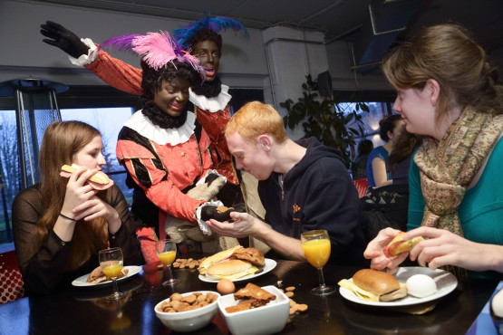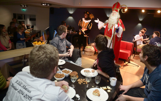 De Student Union had voor de studenten een ontbijt georganiseerd. Terwijl iedereen daarvan genoot en af en toe een rondvliegende pepernoot moesten ontwijken, werd een aantal verenigingen naar voren geroepen voor een gedicht en cadeautjes van de Sint.