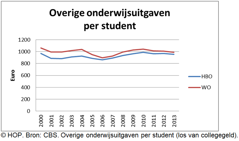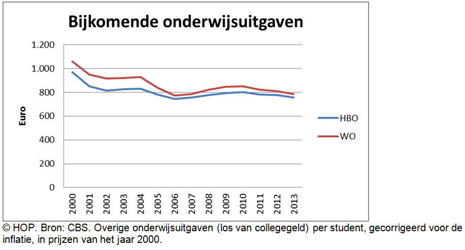 Het bedrag dat studenten gemiddeld uitgeven aan extra studiekosten ligt al jaren rond de duizend euro. Voor universitaire studenten is het iets meer, voor hbo-studenten iets minder.