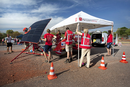Het zijn de laatste kilometers van de zonnewagen uit 2011. Vandaag zette het Solar Team Twente de auto te koop op Marktplaats. ‘Net als onze andere oude zonneauto’s staat de 21Connect eigenlijk alleen nog maar in de werkplaats’, aldus Justine Wolters van het Solarteam.