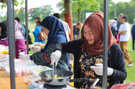 Na de traditionele Indonesische dans halen de presentatoren een aantal mensen uit het publiek om mee te dansen op Indonesische muziek, er is niet veel animo voor. ‘Dat heeft meer te maken met verlegenheid van de bezoekers dan echte cultuurverschillen’ zegt Noor Rachman. Hij vertelt waarom er volgens hem zoveel mensen op af komen. ‘De combinatie van een festival en traditioneel Indonesisch eten is een goed format, verschillende nationaliteiten samen brengen op dit festival en kennis laten maken met de Indonesische keuken en cultuur, daar gaat het om.’