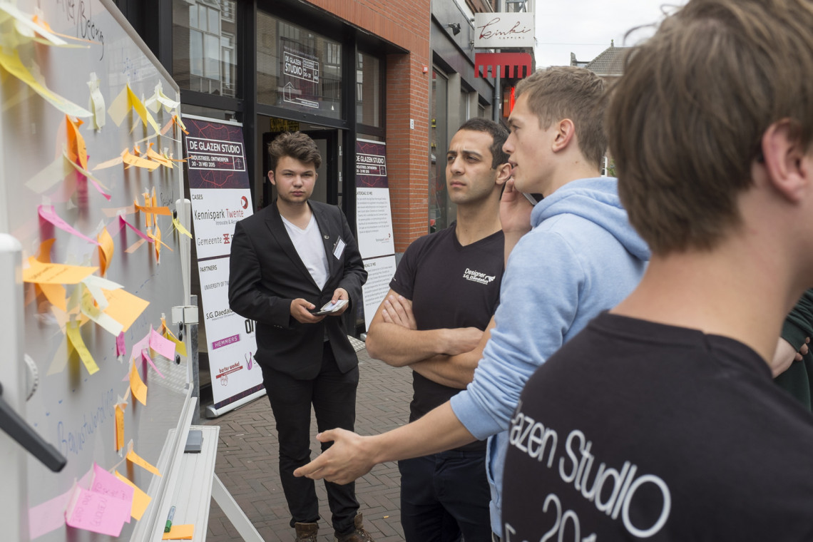 Elke dag stond er een case centraal. ‘Zaterdag werkten we aan een vraag vanuit Kennispark. Dat ging over het innovatiepad, een route vanaf station Drienerlo naar de campus. Het was de uitdaging om een zo aantrekkelijk mogelijk pad te creereen. Er kwamen leuke dingen uit, zoals verrekijkers langs de route. Wie er doorheen kijkt, ziet bij de bedrijven die in beeld komen pop-ups verschijnen met daarop informatie. Denk aan wat voor een bedrijf het is en vacatures.’