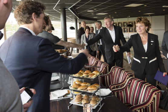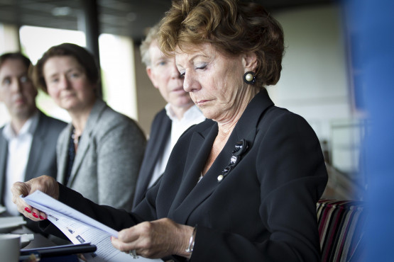 Kroes, welkom geheten door cvb-voorzitter Victor van der Chijs en Kees Eijkel, directeur Kennispark Twente, zegt direct de sfeer te voelen na aankomst in The Gallery. ‘Jullie houden niet van koffie, maar van aanpakken en gaan direct aan de slag.’ Kroes vertelt dat ze onderweg geen kop koffie kon vinden. ‘En bij binnenkomst hier ook niet. Ik zou er best één lusten’, zegt ze gekscherend. ‘Niettemin, stel ik het op prijs dat wij vandaag gevoed worden met jullie kennis en ervaring. Ik snap heel goed dat Henk Kamp (minister Economische Zaken) mij destijds vroeg om ambassadeur te worden van start-ups. Hij is vast besmet geraakt met jullie houding.’