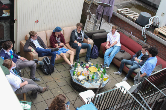 Nadat een deel van de aankomende studenten aan de rondleiding begint, krijgt de andere groep nog meer leuke huisanekdotes te horen. Zo betekenen moorkoppen in de koelkast dat er iemand gescoord heeft. Aankomend student civiele techniek Jesse Schaeffer (19): ‘Ik kan nu alvast sfeer proeven hoe het is in Enschede en wat voor een soort studentenhuizen er zijn. Aanvankelijk dacht ik in een gemengd huis te willen wonen, maar nu merk ik dat die sfeer van mannen onder elkaar mij ook aanspreekt’. Een kleine kamer vindt hij geen probleem. ‘Handig juist, want die zijn goedkoper en ik moet het zelf betalen.’