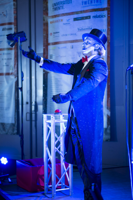 Hangar 11 was omgetoverd tot evenementenlocatie voor het Out of the box festival. Onder het toeziend oog van familie, vrienden en partners opende teamleider Irene van den Hof de presentatiemiddag.