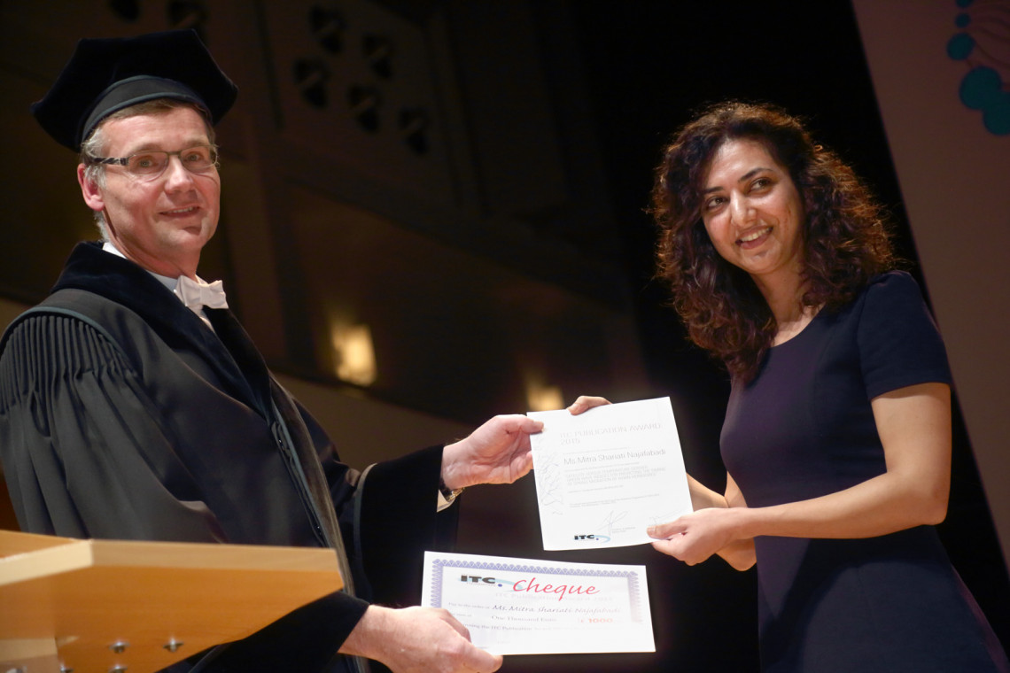 Professor Veldkamp also presented the ITC Publication Award for best scientific paper by a PhD student. This year the award and a €1000 price went to Mitra Shariati Najafabadi, who was managing a research describing migration of birds from the Netherlands to Russia.