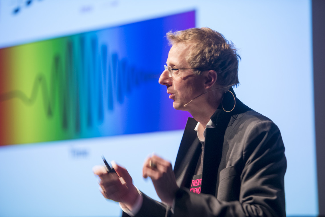 Eerder op de avond vermaakte hoogleraar Ad Lagendijk het publiek met wat hij noemde ‘de droom van heel veel mensen’: het onzichtbare zichtbaar maken, ofwel kijken door structuren die normaalgesproken geen licht doolaten. Op het grote scherm toonde hij foto’s van een vrouw en van een man, beiden in een bad met schuim. ‘Veel mensen zouden hier doorheen willen kijken’, aldus de natuurkundige.