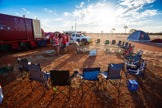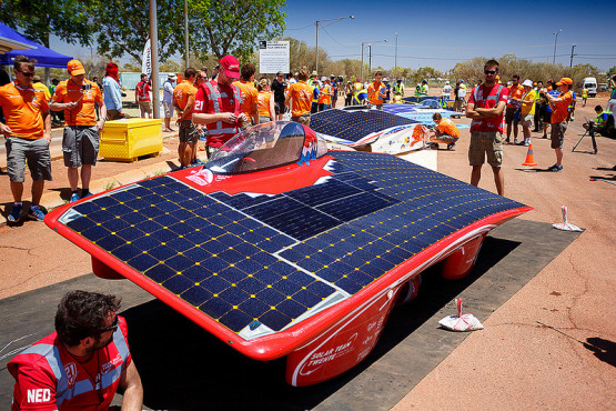 De derde dag van de Australische zonnerace zit erop. Op nog geen drie kilometer afstand van elkaar zetten de teams uit Delft en Enschede hun tentenkamp op. ‘De afstand tussen ons was op een gegeven moment nog maar elf seconden’, zegt Wolters. ‘Dat was bij de eerste controlstop in Alice Springs. Daarna deed Delft nog een poging om in te halen, maar gaf dat later op.’