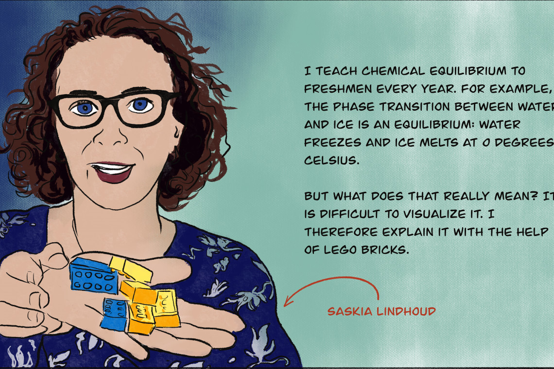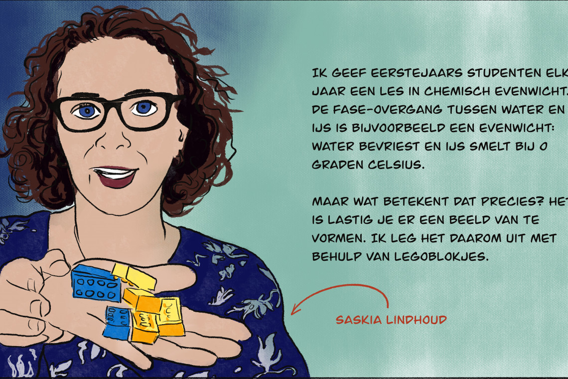 Vervolgens vertelde Lindhoud over haar huidige onderzoek naar de aantrekkingskracht van geladen moleculen in cellen. ‘Ik kan me indenken dat dit soort krachten een rol hebben gespeeld bij het begin van het leven. Dat vind ik vooral schoonheid: het snappen van het ontstaan van leven.’