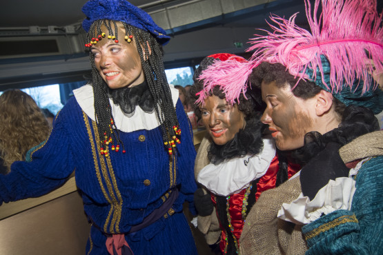 Wacht even. Bruin? Ja, bruin (geschminkt). Of de Sint nu zelf ook door de schoorsteen gaat of in de zomer wat festivalletjes heeft meegepakt, weet niemand. Sint installeert zich rustig op de bank, kijkt rond en lacht bulderend. Maar eerst mag ‘ongemakkelijke vragen-Piet’ een ongemakkelijke vraag stellen.