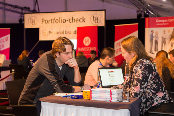‘Het loopt allemaal op rolletjes vandaag, er is een fijne continue stroom van studenten die binnenkomen’, zegt derdejaars industrieel ontwerpen Michelle Geerlings (20) uit het bedrijvendagenbestuur. ‘Ik hoor van bedrijven dat ze het fijn vinden dat er veel bachelorstudenten rondlopen. Het is een goede zaak dat studenten zich eerder oriënteren, dan is de kans groter dat ze op de goede plek terechtkomen.’