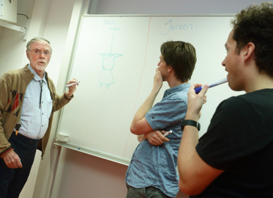 Today, the man behind 'Hewitt Drew it!' visited the University of Twente to hold a cartoon workshop and a lecture on 'Conceptual Physics'. The event was initiated by Studievereniging Onwijs, a UT student association. Paul Hewitt was coming to the Netherlands to appear at a big event in Nijmegen, and so the UT organizers didn´t hesitate to invite him to Twente, so he could share some details about his unique teaching technique.