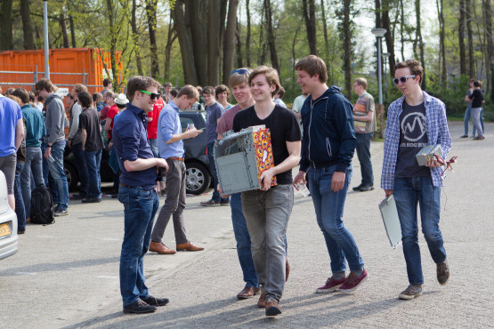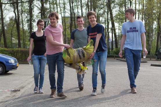 ‘De Beagle++ start om 16.30. Alle teams – inclusief hun verpakte computer – melden zich bij ons. Dan volgt een pre-test met oude computers vanaf 15 meter hoog. Daarna begint het echte werk! De computers worden eerst van 15 meter afgegooid, daarna vanaf 25 meter en daarna volgt de finale, waarbij ze vanaf 50 meter worden gegooid.’