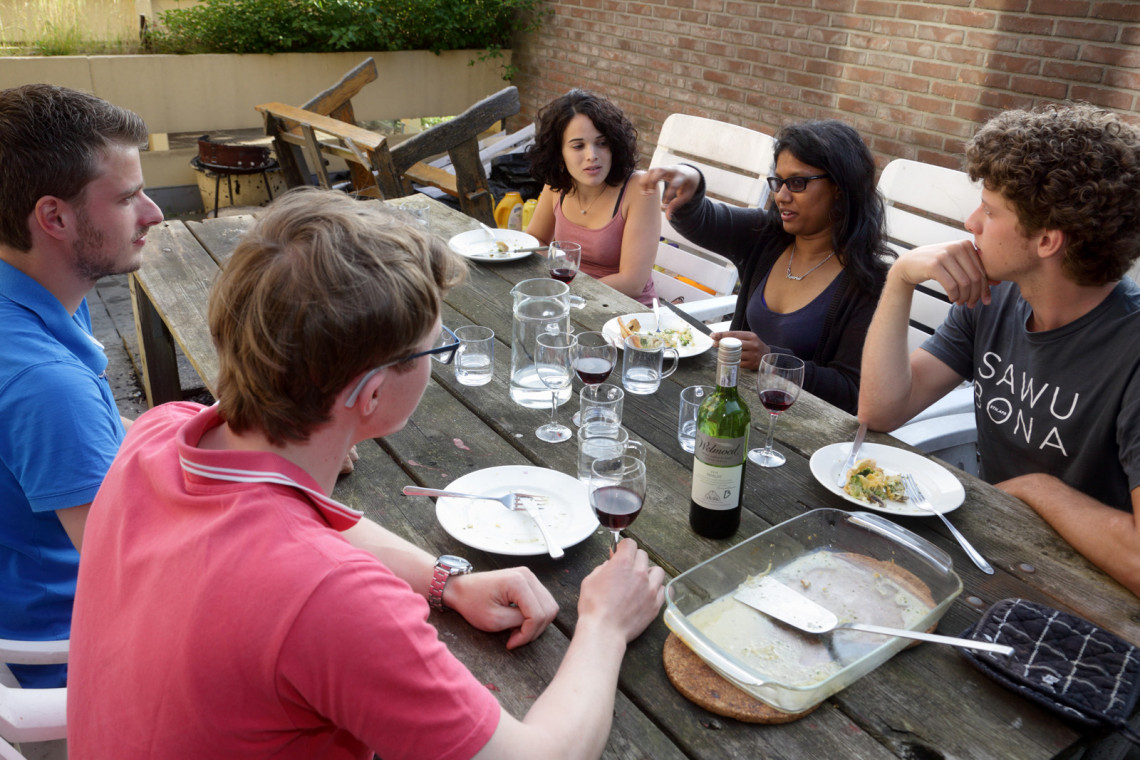 The international dinner guests, Soundarya Sitaram from India and Camila Vasconcelos from Brazil, confirm that socializing with Dutch students isn´t an easy task. 'I signed for 'Dine with the Dutch' because I live with a dozen of internationals from all over the world, but no Dutch. That is understandable. Many students have to speak English at the university, so I understand they just want to speak their native language when they come home,' thinks Camila Vasconcelos.