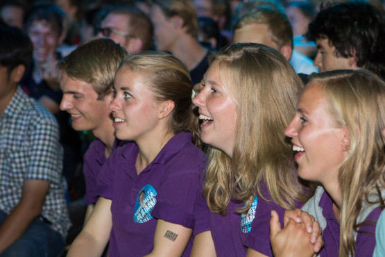 Als afsluitende truc nodigde de goochelaar – niet voor de eerste keer donderdagmiddag – een vrijwilligster uit het podium op te komen. De studente, Iris, kreeg een sinaasappel ‘uit Spanje’ en moest die naast haar op de grond leggen.