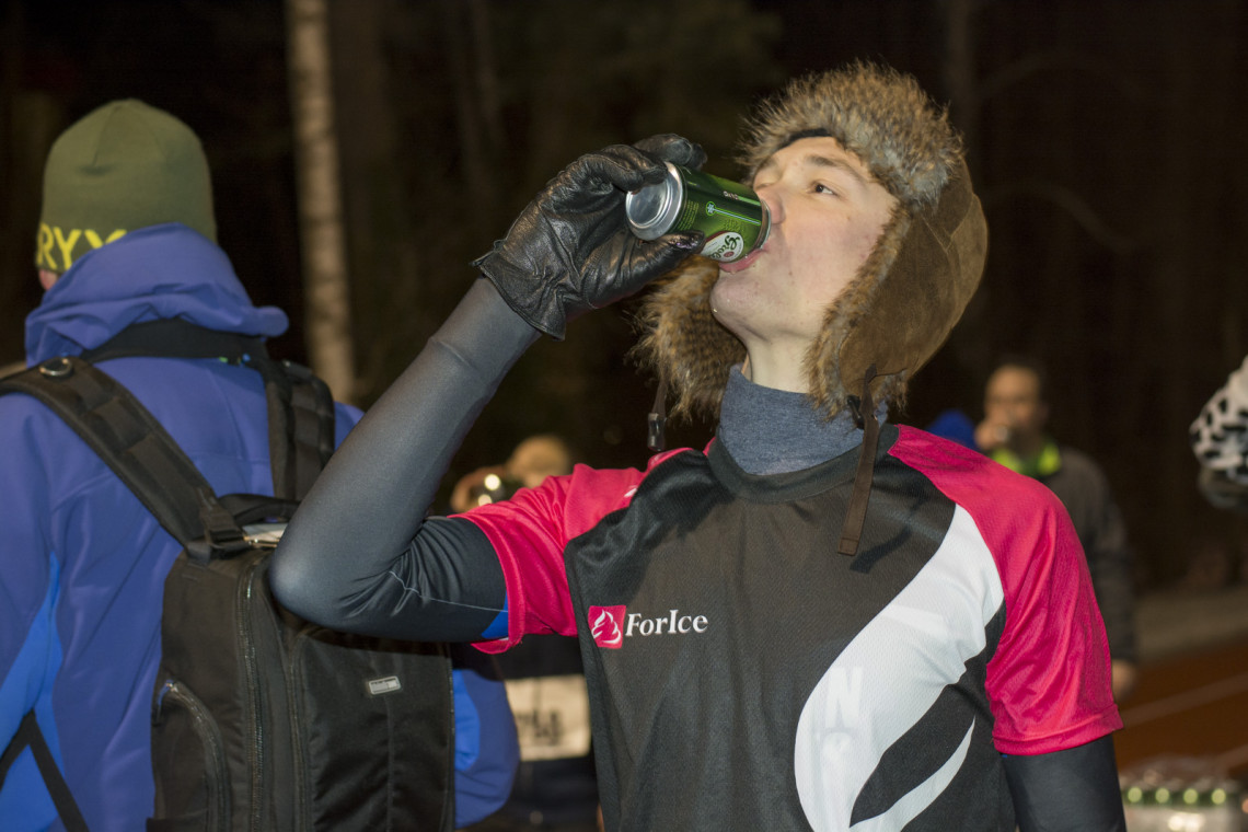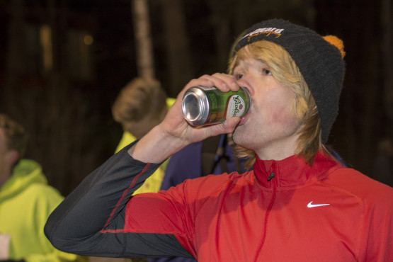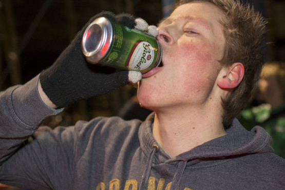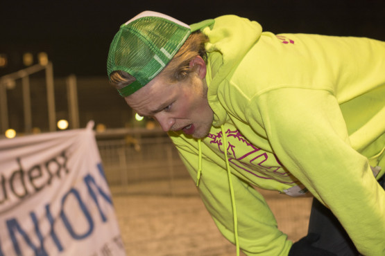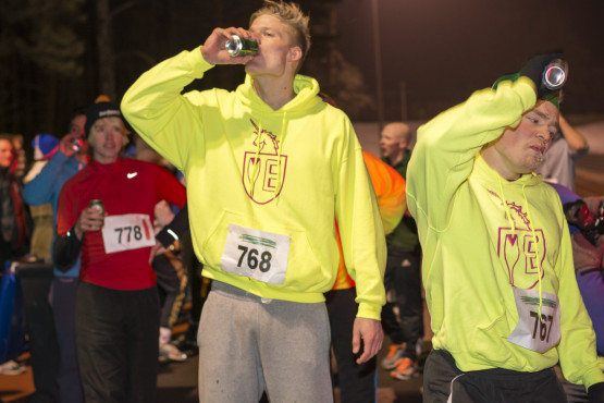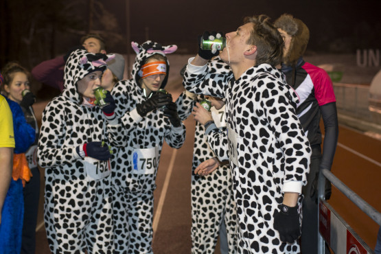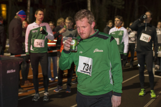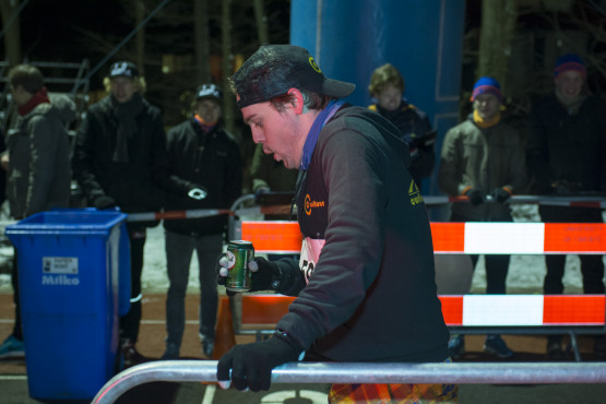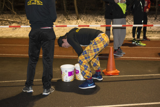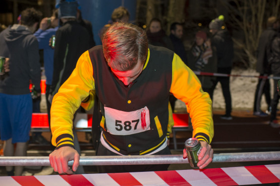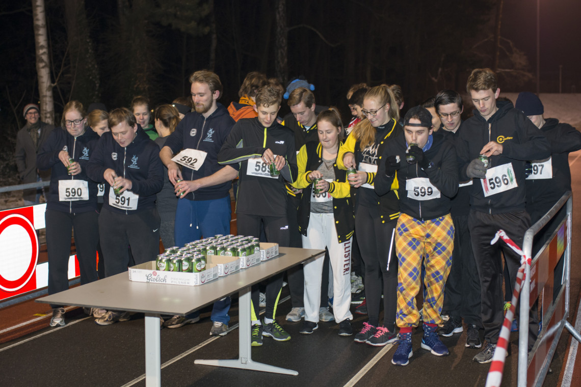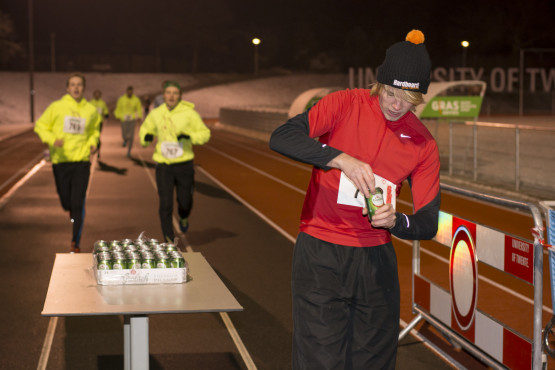 Deelnemers liepen één mijl en dat betekende vier rondes om de atletiekbaan én evenzoveel blikjes bier achteroverslaan. En dat ging niet bij iedereen goed. ‘Het viel mij ook zwaar’, zegt winnaar Fenna van der Grient en een van de organisatoren. ‘Er werd ook flink gekotst onderweg. Dat kan haast ook niet anders met zoveel volume in je buik. Al dat bier en dan ga je ook nog rennen. Dat borrelt en schuimt.’
