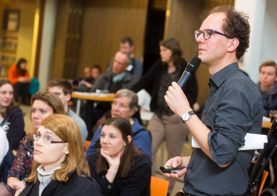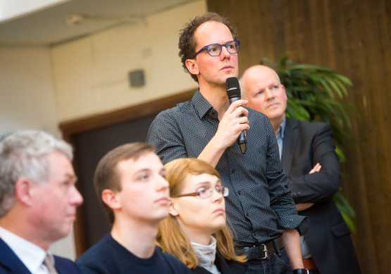 Het discussiepanel, bestaande uit docenten Dick Meijer en Maurice van Keulen en studenten Maarten de Lange en Heleen Kok, haakte in op Wessels opmerkingen. Kok: ‘Ik zie ook de mooie kanten – projectwerk en de integratie van verschillende vakken – maar ik voel als student ook de pijnpunten. Zeker de ongedeeldheid van modules.’