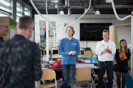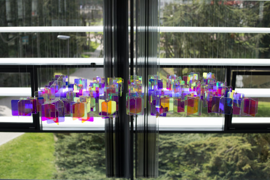 Although you can find SquareWave in the DesignLab, the art work was originally meant to hang in the Citadel, where the Department of Applied Mathematics used to be located. However, the department moved to a different building several years ago and no longer has an appropriate space for SquareWave. ‘A few months ago, it was therefore decided to display the installation in the DesignLab, which turns out to be the perfect location for it,’ says Dertien, whose art work can also be found at other places at the UT campus, such as in the Carre.