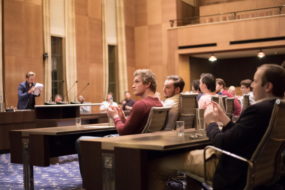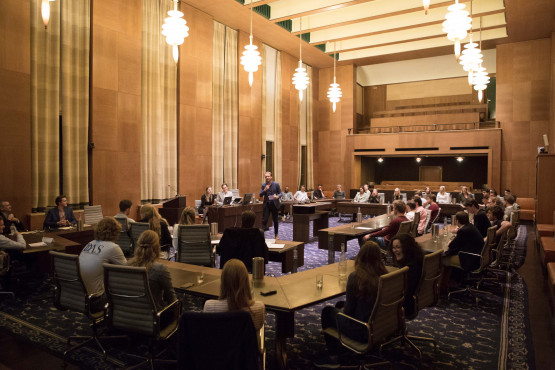 Het symposium werd ingeleid met een film over het doel van de Veerstichting. ‘Door ‘de leiders van nu’ in contact te brengen met ‘de studenten van nu’ zijn we bewust bezig met de het creëren van de leiders van morgen. Kom van die bank af en laat je mening horen’, luidde de boodschap van Guy Fabian de Koning, bestuursvoorzitter van de stichting.