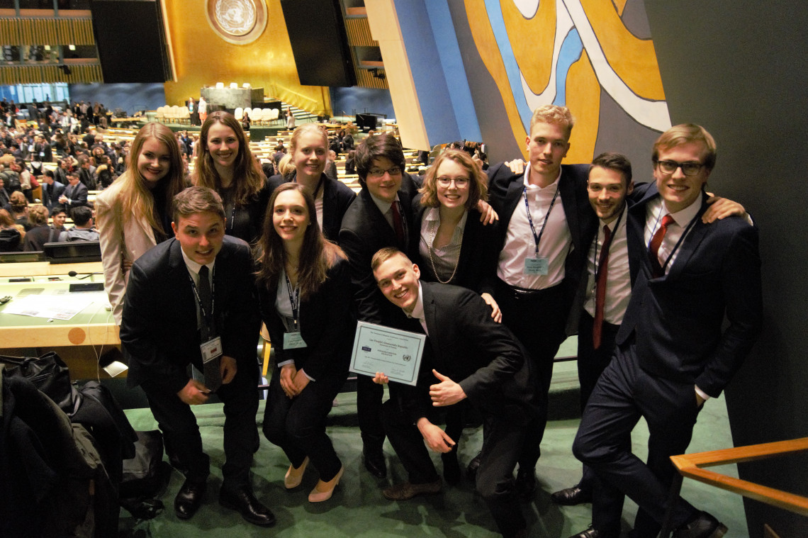 The UT students who participated in the 2017 NMUN: Harpo Vogelsang, Inga Feldmann, Lea Rau, Till Heitmann, Hannah Kuhn, Ariane Luessen, Valentin Schläffer, Jakob Teichmann, Ferdin Arsoski, Silvan Lange, Milena Niehaus.