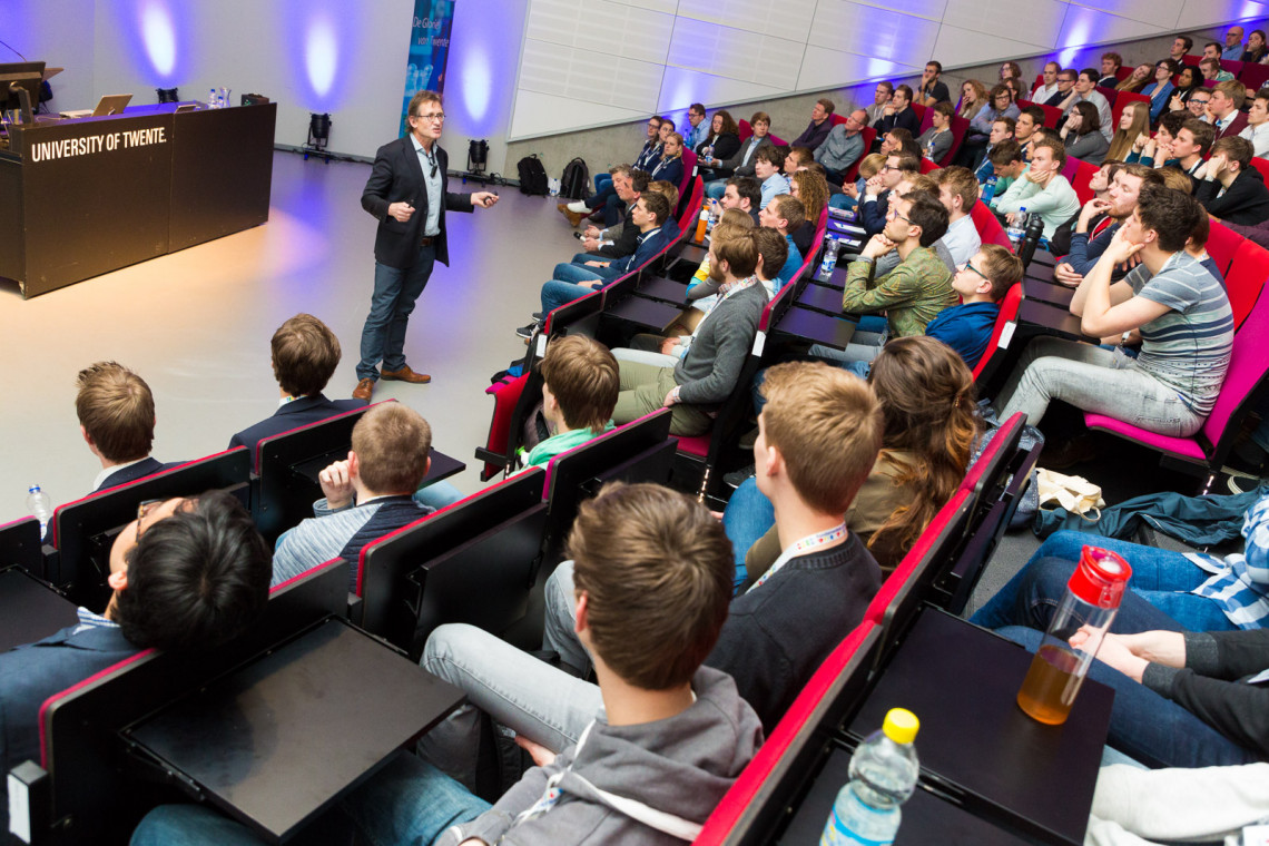 Feringa’s lezing was onderdeel van het symposium ‘Fundamentals of the Future’, georganiseerd door studievereniging C.T.S.G. Alembic. De ontwikkelingen in de scheikundige technologie stonden centraal. Tijdens diverse workshops en lezingen spraken meerdere professionals uit het werkveld over energie, gezondheid, voeding en samenleving en de toekomst.