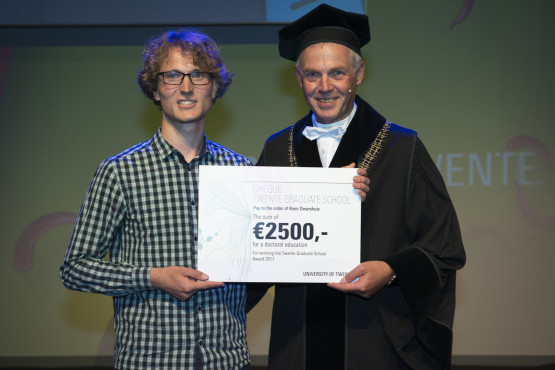 De prijzen: afstudeerprijzen voor vijf studenten, de TGS Award voor Koen Dwarshuis en de Centrale Onderwijsprijs voor Pieter Roos.