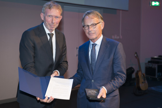 Herman Hazewinkel, vertrekkend voorzitter Universiteitsfonds Twente kreeg de Erepenning overhandigd. En bij het Ambassadeursnetwerk vindt een wisseling van de wacht plaats.