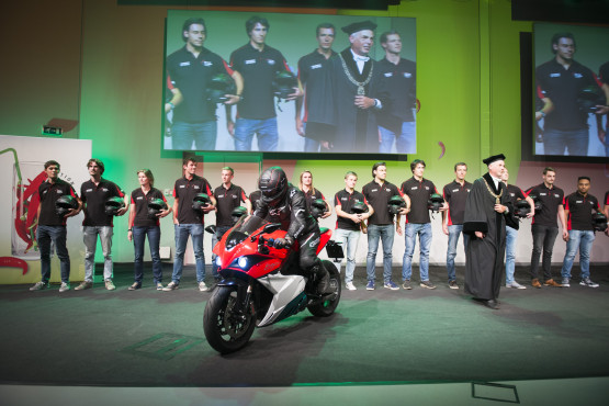 Na een praatje van student Elise de Groote presenteerde het nieuwste studententeam, Electric Superbike Twente, zich aan het grote publiek.