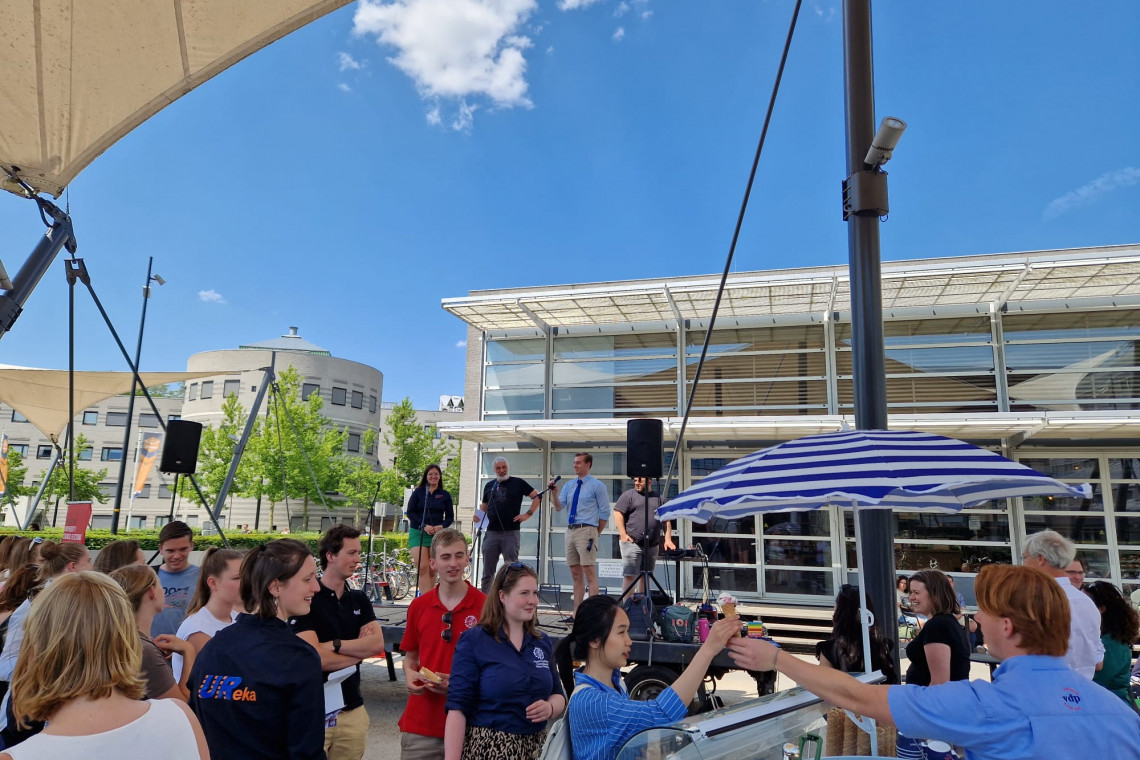 Op deze voedselmarkt presenteren zeven bedrijven zich. Appèl, Coffee Star, Sodexo, V’business, Compass Group, Albron en Cormet catering schotelen hun eten en drinken voor aan het UT-publiek.