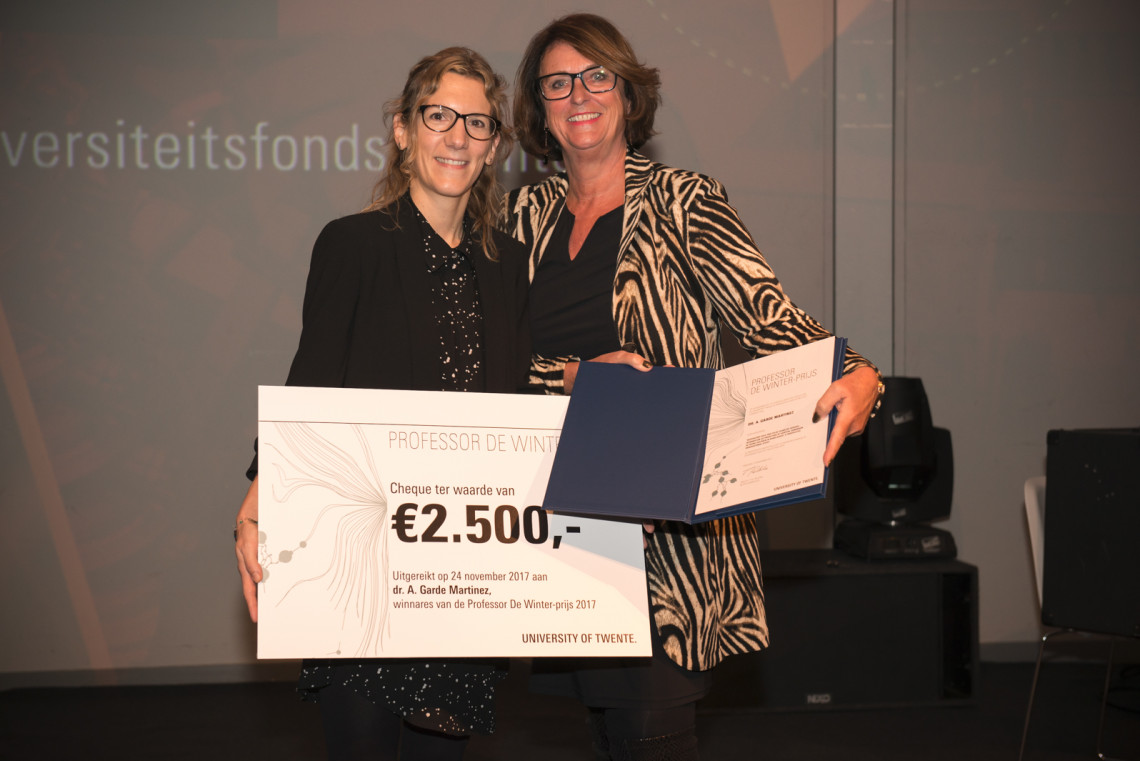 The second award is the Professor De Winter Prize for outstanding female talent. The 2017 winner of this prize is Ainara Garde, Tenure Track assistant professor from the Biomedical Signals and Systems group. Garde was selected by the jury based on her academic article titled ‘Respiratory rate and pulse oximetry derived information as predictors of hospital admission in young children in Bangladesh’.