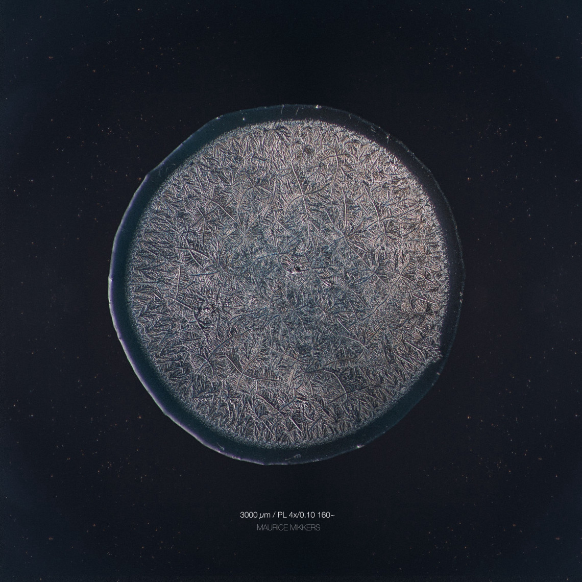 Mikkers was invited by UT researcher Alvaro Marin from the Physics of Fluids group. Marin uses the tears collection for his research and wishes to encourage more collaboration among scientists and artists. ‘The images are perfect for illustrating my research on drying droplets,’ says Marin. ‘Each tear is different, but each one has a thicker ring on its border. This is a unique phenomenon and my research aims to explain why that ring is always there.’
