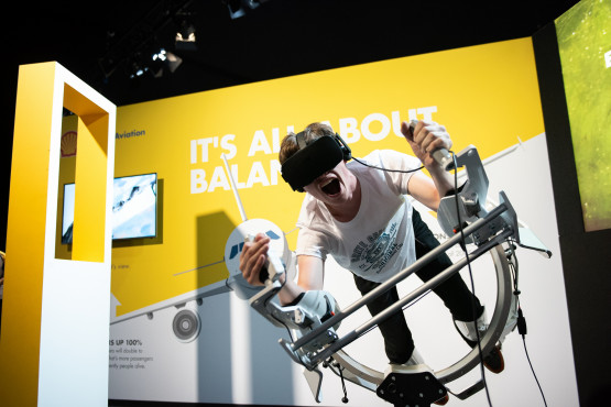 A regular visitor of the SEM first walks through the festival tent full of 'interactive experiences', such as VR simulations or futuristic hallways.