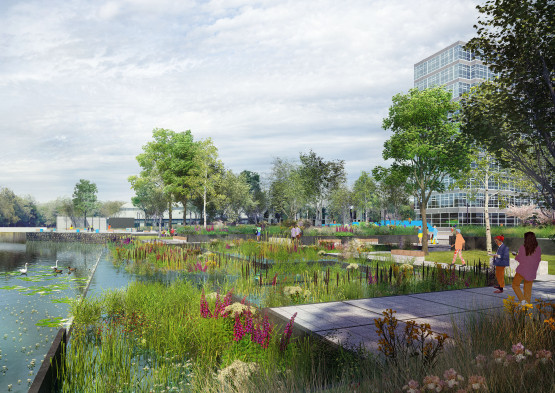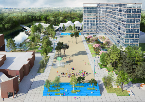 Beelden van hoe het plein voor de Hogekamp eruit komt te zien.