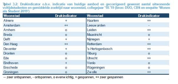 De drukte is het meest nijpend in Amsterdam, Haarlem, Leiden, Rotterdam, Den Bosch, Utrecht en Zwolle. In Leeuwarden is de studentenwoningmarkt het meest ontspannen (zie tabel).