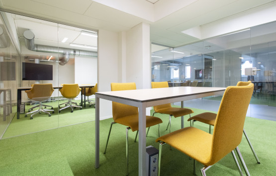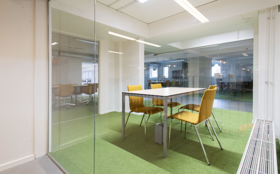 Er zijn in totaal vijf vergaderruimtes, vier grote en een kleine. Bedoeld voor de studentondernemers die zich even willen terugtrekken, om iets te bespreken met een coach of (potentiële) investeerder. Dat wil je niet altijd aan de bar of aan de hoge tafel doen.