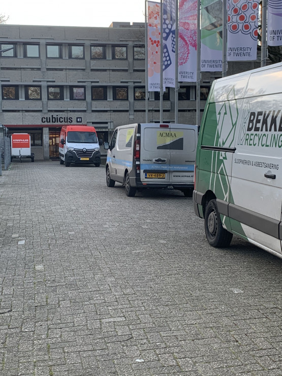 Want naast de nieuwe werkzaamheden, gaat veel van het eerder geplande werk gewoon door. ‘Het nieuwe rookbeleid ging deze week in, dus daarom staan er borden en hebben we markeringen geplaatst. Het schiet verder goed op met het plein bij de Hogekamp, voor het nieuwe ITC-gebouw zijn we bezig met de nutsaansluitingen. Al met al: het kan wel rustig zijn op de campus, maar het is er qua werk niet minder druk om.’