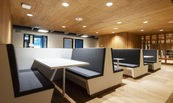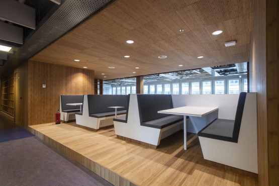 Dat is de afgelopen maanden gebeurd in Carré. Zo’n 950 vierkante meter werd verbouwd. Nu prijken er ruimtes voor (zelf)studie, projectwerk en socializen, maar ook koffiecorners en kantoren. Het geheel: een ‘homebase’ als kloppend hart voor de faculteit.