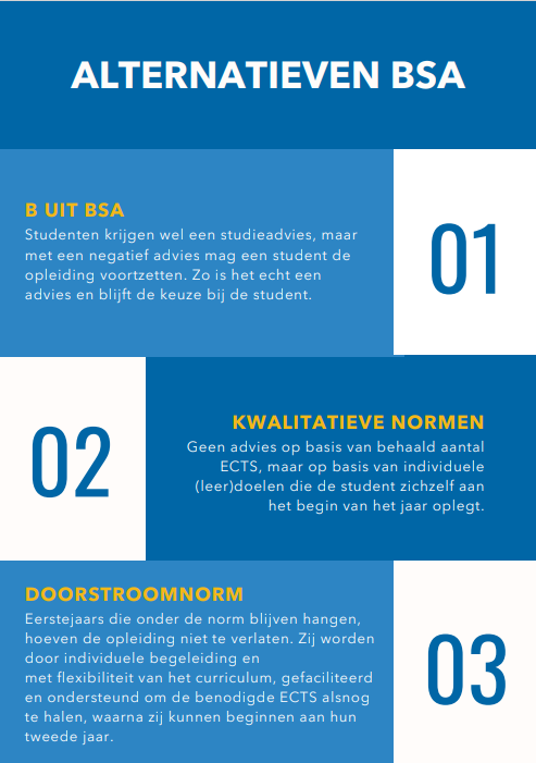 In de politiek groeit de twijfel over het bindend studieadvies, bleek deze maand. Het CDA stelde het bsa ter discussie in het Tweede Kamerdebat over de onderwijsbegroting. De partij wil uitzoeken of een ander systeem misschien beter werkt en diende een motie in.