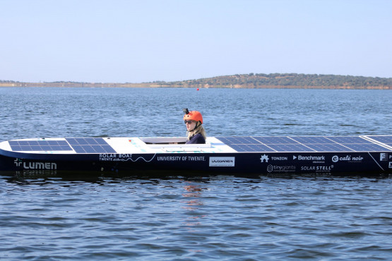 De volgende dag was het hoogtepunt van ons raceweekend. Tijdens de lange race, waarin we zoveel mogelijk rondjes van 9,5 kilometer moesten varen, hebben we de gehele concurrentie op een ronde achterstand gezet. Dat was een mooie bevestiging voor ons, omdat de boot het drie uur lang bijna volledig op zonne-energie – niet zozeer op de accu – volhield. Dat is precies waarop we ‘m hebben gebouwd. Bij de knock-out en sprint werden we vierde, waardoor we een derde plaats in het eindklassement behaalden. Dat was ons doel ook afgelopen weekend, het halen van een podiumplek en aantonen dat de boot het op alleen zonne-energie heel lang kan volhouden.’