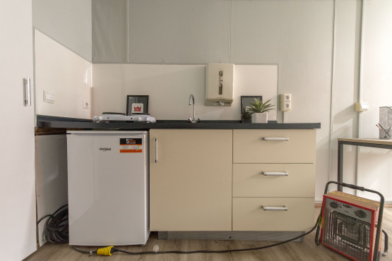 Er wordt nog volop gewerkt op de bouwplaats van de nieuwe containerwoningen aan de Witbreuksweg. Terwijl verhuizers en bouwvakkers de laatste hand leggen aan de oranje studentenonderkomens, krijgt een select gezelschap een rondleiding. Eerste stop: een voorbeeldcontainer die alvast is ingericht. De langwerpige woning van bijna 30 vierkante meter is voorzien van een eigen keukentje en badkamer.