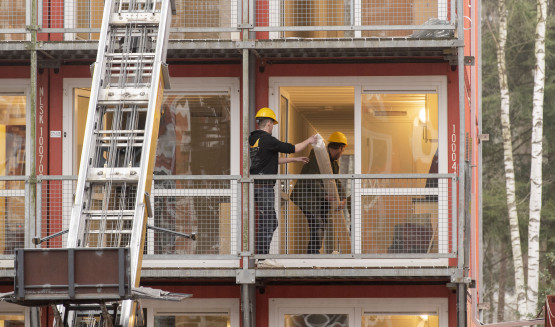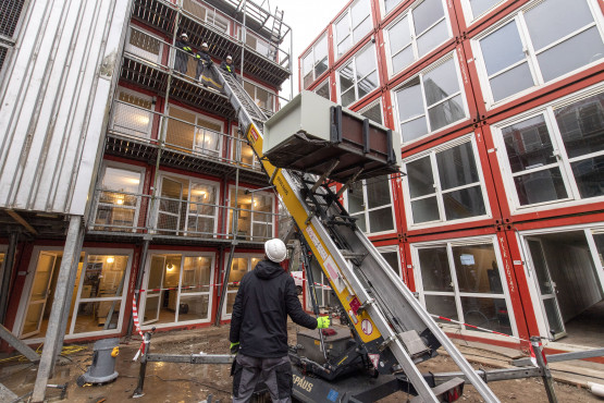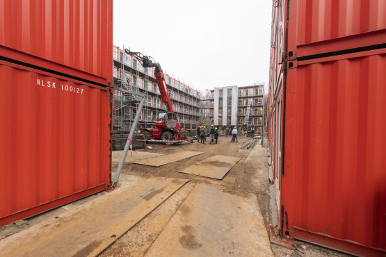 Ook Machteld Roos, vicevoorzitter van het CvB, is enthousiast over het tempo. Al zouden de woningen in eerste instantie in oktober worden opgeleverd. ‘Dat was wel heel ambitieus’, weet Roos. ‘Met februari is het uiteindelijk de kortst mogelijke doorlooptijd geworden. Daarvan ben ik erg onder de indruk.’ De opstelling van de containers stemt haar eveneens tevreden. ‘Het is een carrévorm. Dat bevordert het contact tussen studenten. We willen die ontmoetingen graag stimuleren.’