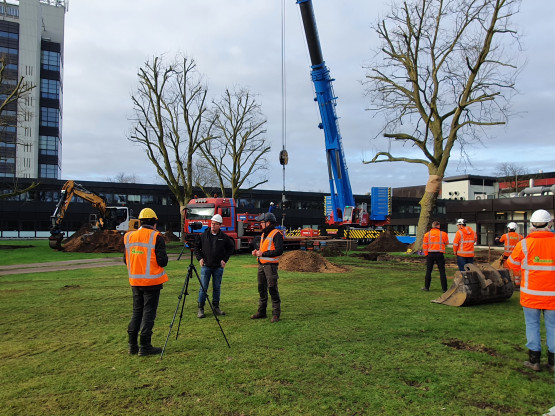 Vanwaar deze boomverhuizing? Op het stuk grond tussen de Noordhorst en de Kleinhorst liggen nieuwbouwplannen voor CUBE, een nieuwe multifunctionele werkplek voor de uitbreiding van de faculteit Engineering Technology. Eén ding – of vier eigenlijk – stond die plannen nog in de weg: zo’n tachtig jaar oude platanen. ‘Het goedkoopste en makkelijkste is om die bomen kappen, maar dat is natuurlijk hartstikke zonde en past niet binnen het duurzaamheidsbeleid van de UT’, vertelt De Brouwer. Rob Gulmans, directeur van Quercus, vult hem aan. ‘Zulke bomen krijg je niet meer terug. Die vertegenwoordigen een enorme waarde. Als ik moet schatten zo’n 20.000 euro per stuk. ’