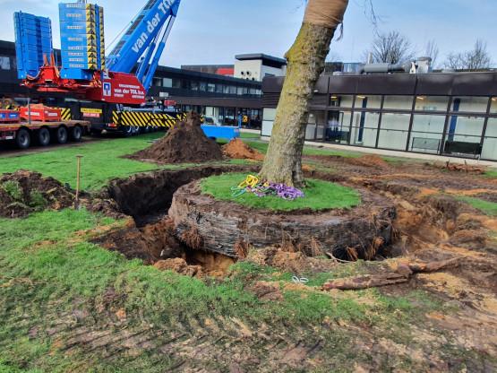 En net als bij het verplanten thuis, is ook hier de nazorg het belangrijkste, weet De Brouwer. ‘Die nazorg duurt vijf jaar, waarvan de eerste drie jaar intensief zijn. De bomen hebben niet te veel en niet te weinig water nodig, moeten de juiste voeding krijgen en van zuurstof worden voorzien. Als deze verplaatsingen morgen achter de rug zijn, gaan we daar mee bezig en hopen we dat de bomen er nog jarenlang blijven staan.’
