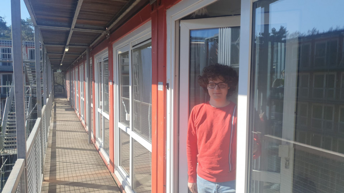 Hoewel het grootste gedeelte van het complex nog niet bewoonbaar is en bouwvakkers nog druk in de weer zijn, geniet Jesse Korolainen van de zon die precies tussen de gordijnen binnenvalt in zijn container. Hij leeft nu zo’n vijf weken in zijn huidige toko. De Finse masterstudent woont op het eerste nummer en is tevreden met zijn woonsituatie. ‘Als het goed is studeer ik hier maar een half jaartje. Stel dat ik hier jaren zou moeten wonen, dan had ik een keer wat anders gezocht, maar voor nu is dit prima. Ik heb alles wat ik nodig heb’, vertelt hij terwijl hij achtereenvolgens zijn keuken, badkamer en toilet aanwijst. Het enige minpuntje dat hij kan noemen, is het geluid van de bouwvakkers dat dagelijks vanaf 8.00 uur fungeert als zijn wekker.