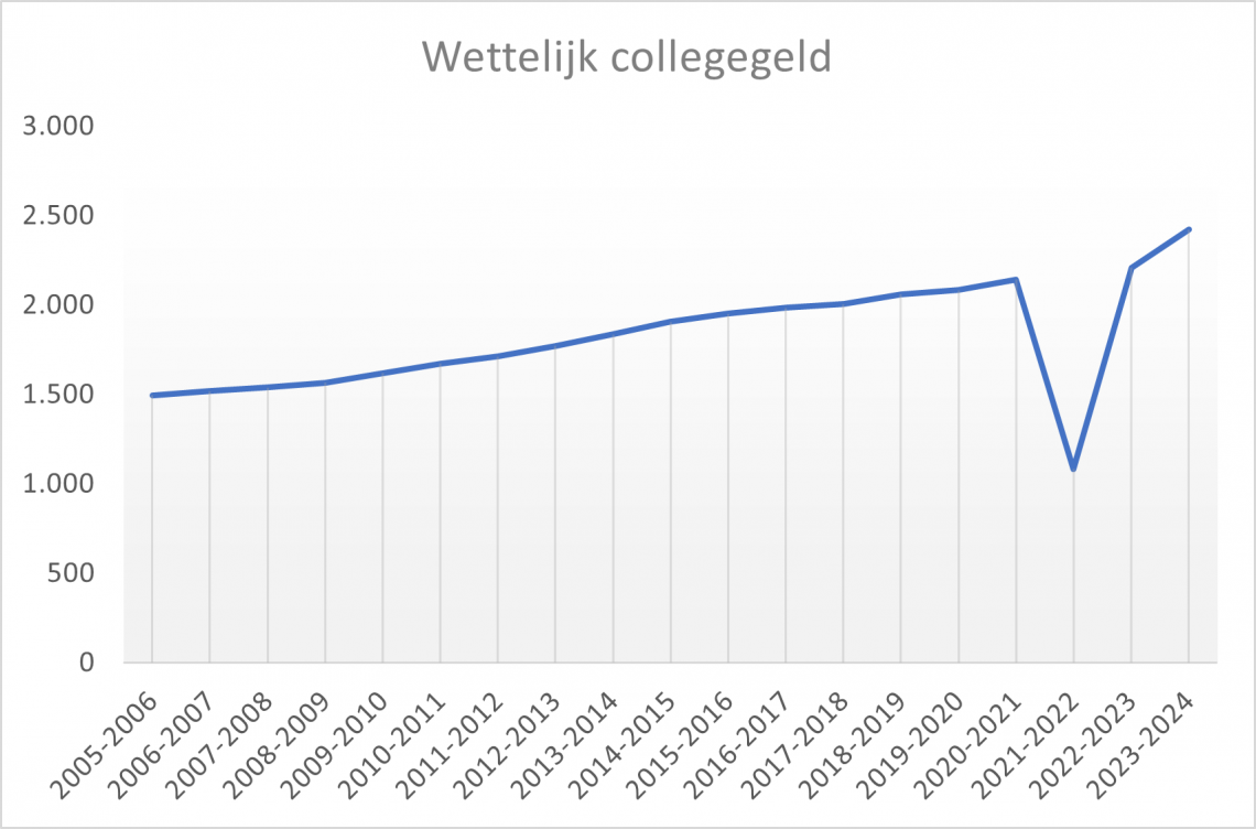 Vanaf september 2023 betalen studenten 2.421 euro collegegeld per jaar. Tenminste, als het kabinet het nieuwe tarief op dezelfde manier vaststelt als in eerdere jaren: op basis van de inflatie.