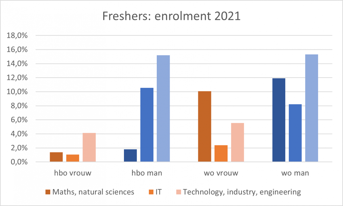 Nevertheless, that it what is happening to some extent, for example in the underrepresentation of women in the exact sciences, technology and mathematics. There is a risk of widening gender gaps, he said. Dijkgraaf calls this ‘unacceptable and unnecessary’.