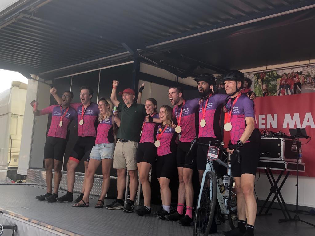 Het UT-team haalde bijna 19.000 euro op voor het Daniel den Hoed Fonds, dat kankeronderzoek in het Erasmus MC Kanker Instituut ondersteunt. Het hele ‘peloton’ haalde gezamenlijk zo’n 1,1 miljoen euro op. ‘Een prachtig bedrag als je het mij vraagt. Mensen kunnen zelfs nog steeds doneren, dus het bedrag loopt vermoedelijk nog iets op. De ziekte speelt in mijn familie een rol, dus ik was extra gemotiveerd om mee te doen.’
