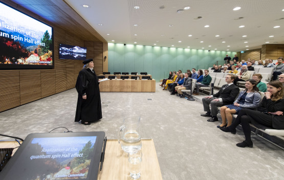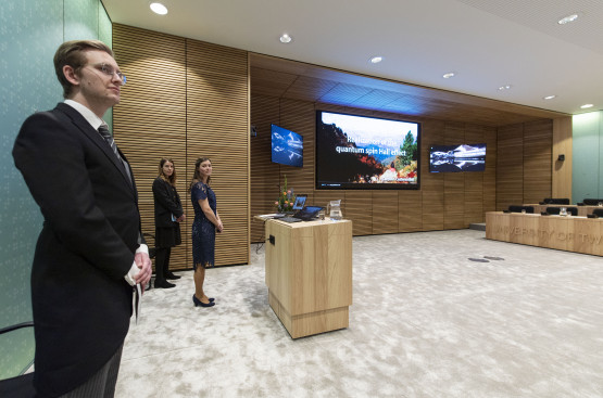 Een andere majeure ingreep was de podiumopstelling. De zaal werd al hoofdzakelijk voor promoties gebruikt, maar door de opstelling stond een promovendus die zijn of haar proefschrift verdedigde met de rug naar een deel van de promotiecommissie. Door de renovatie was Castenmiller, promovenda bij de TNW-vakgroep Physics of Interfaces and Nanomaterials, de eerste die lijnrecht tegenover de commissie stond en haar proefschrift met succes verdedigde.
