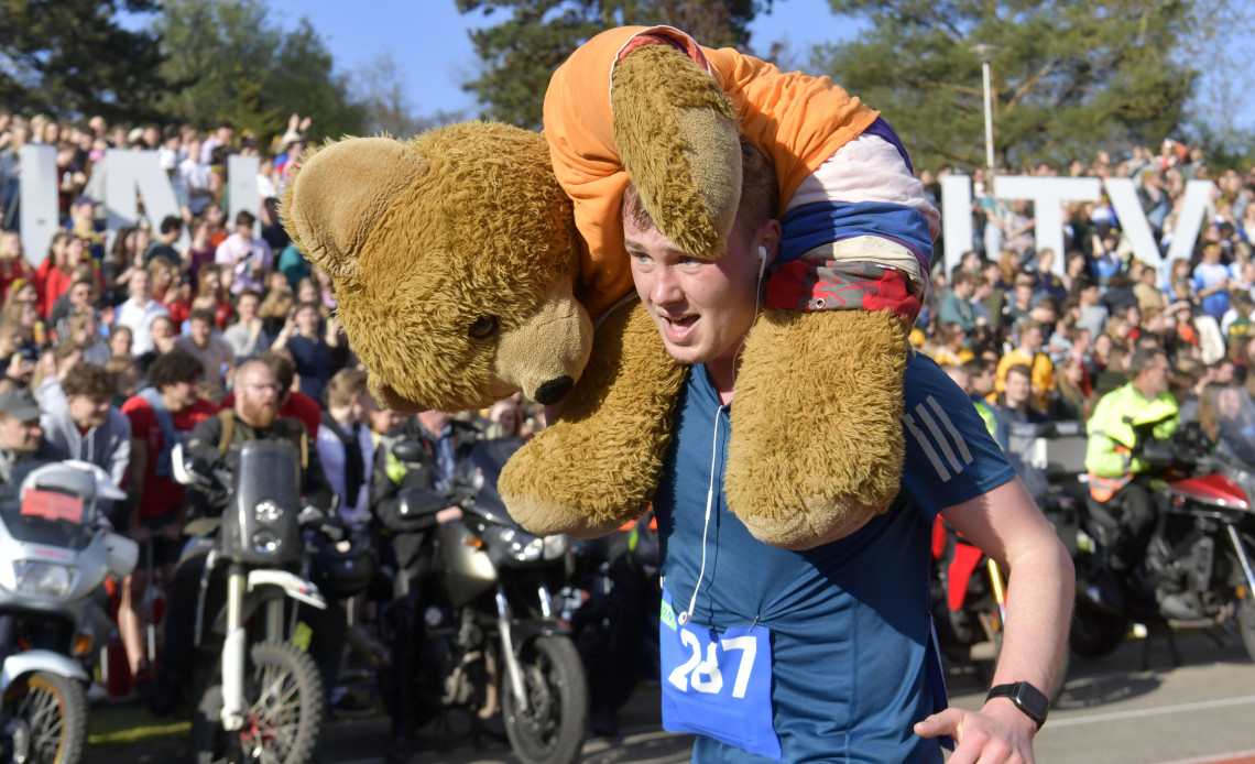 Bij de eindstreep is het ondertussen een drukte van belang. Er zijn dit jaar minder prominenten te bekennen. Traditiegetrouw lopen bekende campusgezichten de laatste etappe. Wie wel van de partij is, is UT-hoogleraar Detlef Lohse. Met zijn onderzoeksgroep Physics of Fluids deed hij al diverse keren mee aan de studentenestafette. De hoogleraar is tevreden met zijn tijd. ‘Helaas kregen we als team wat tijdstraf. We hadden te weinig vrouwelijke lopers, waardoor mannen vrouwenetappes moesten lopen.’