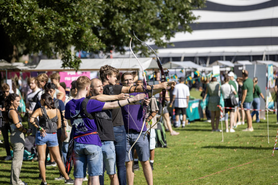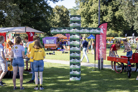 Oordopjes, zonnebrillen, paracetamol, ijsjes, bijbels, condooms, bidons en stickers, heel veel stickers. De verenigingen, bedrijven en organisaties op de Kick-In openingsmarkt doen er alles aan om de eerstejaarsstudenten naar hun kraampje te lokken. Al dat getouwtrek is misschien wat onwennig voor de kiddo’s die zich woensdagmorgen als eerste melden op de groene velden van de campus.